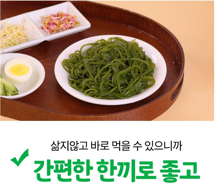 해초국수의 또 다른 장점은 바로 간편함입니다. 따로 삶을 필요 없이 헹군 뒤 바로 먹을 수 있어 바쁜 일상에서도 빠르게 준비할 수 있는 간편식 다이어트 식단입니다.